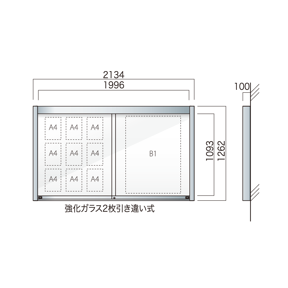 商品説明:ワイド(幅広)アルミ掲示板 AGP-2112W(幅2134mm) 壁付型 照明なし シルバーつや消し AGP-211W2(S)