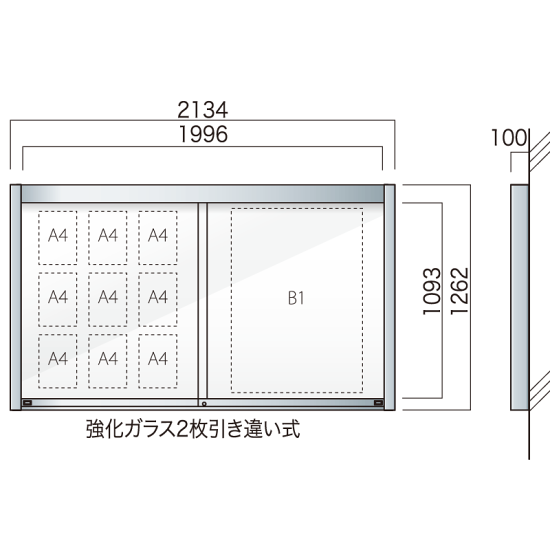 ワイド(幅広)アルミ掲示板 AGP-2112W(幅2134mm) 壁付型 照明なし シルバーつや消し AGP-211W2(S)
