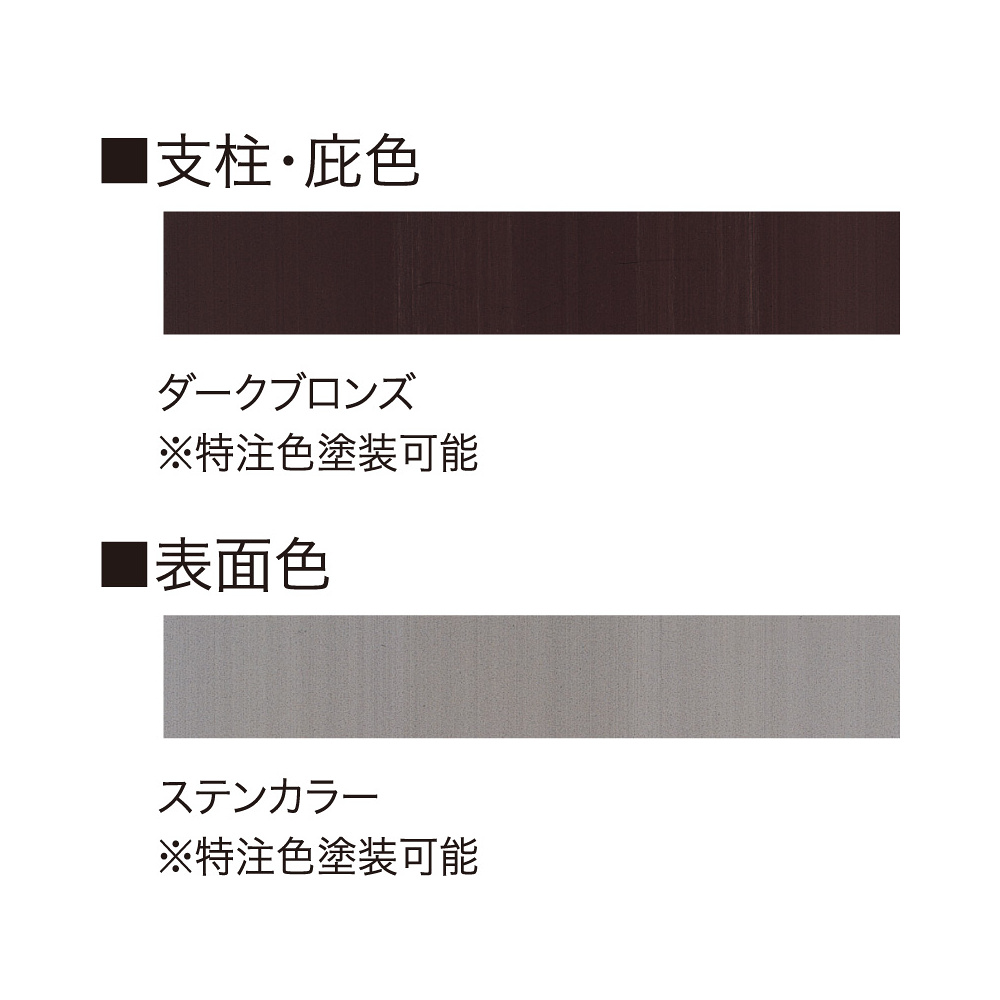- 支柱・庇色は落ち着きのあるダークブロンズ色。表面色はステンカラーになります。共に特注色塗装可能(料金別途)です。