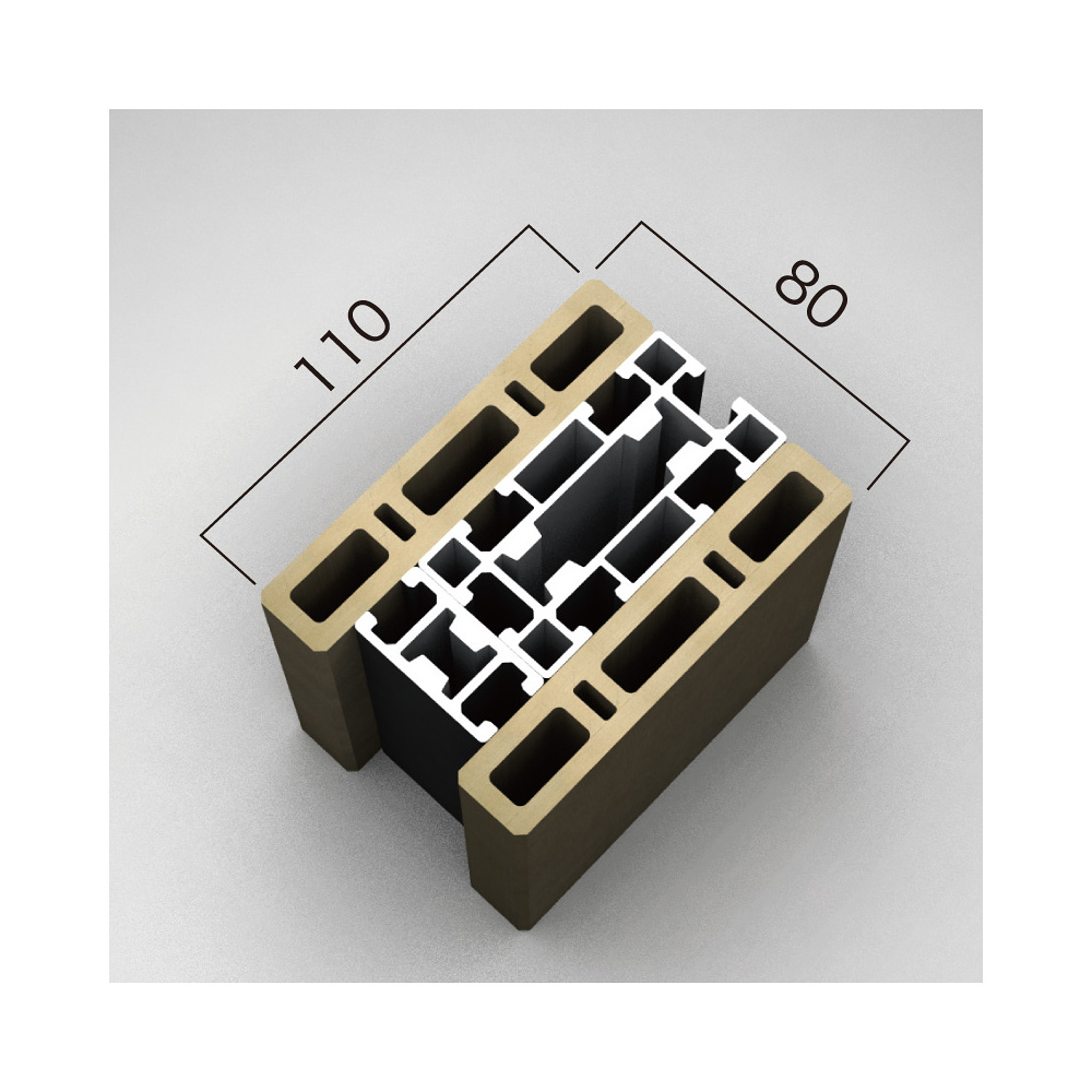- 建築廃材や間伐材を木粉化し廃プラスチックと混合して成形。高い耐久性と木の温もりを両立させたリサイクルウッド。