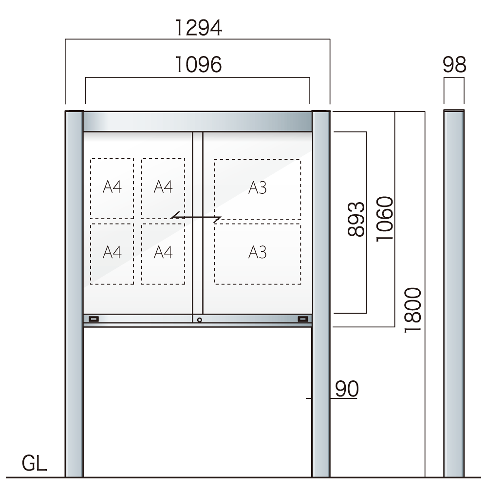 ガラス引き違いタイプのベストセラー掲示板。迷ったらこれの定番掲示板です。