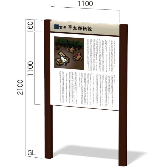 タイトル付き自立埋込み型案内サイン インフォメックス VR-1 S支柱 (幅W1100)