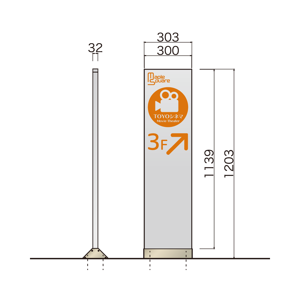 基礎が作れない、掘れないスペースに最適なシンプルタワーサイン型看板