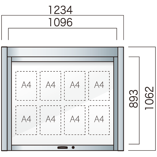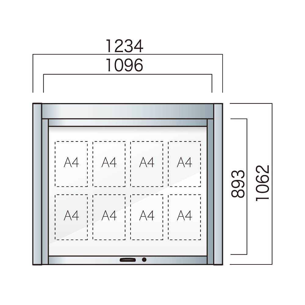 商品説明:跳ね上げ式 壁付型 アルミ掲示板 AGS-1210W/1510W/1810W AGS-1210W(幅1234mm) LED付 シルバーつや消し (AGS-1210W(LED-S))