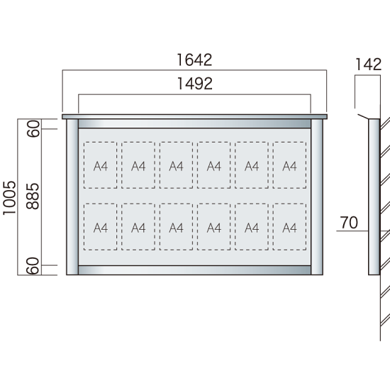 保護板(ガラス)なし 屋外用簡易・壁付型アルミ掲示板 SBD-1510W(幅1642mm) シルバーつや消し (SBD-1510W(S))