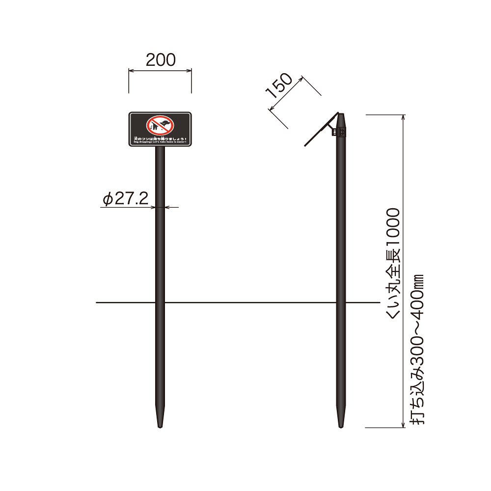 - ■打ち込み杭には、「くい丸」を採用。くい丸の予測耐久年数は約8年~30年の高耐久性。一般の鋼材を使用した各種サインと同等以上の耐久性です。