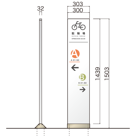 基礎が作れない、掘れないスペースに最適なシンプルタワーサイン型看板