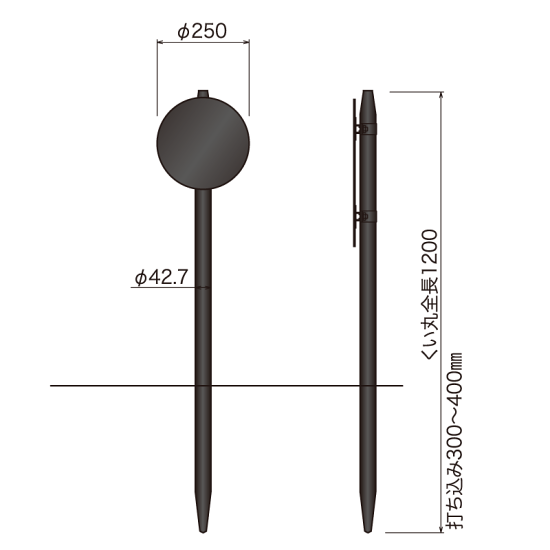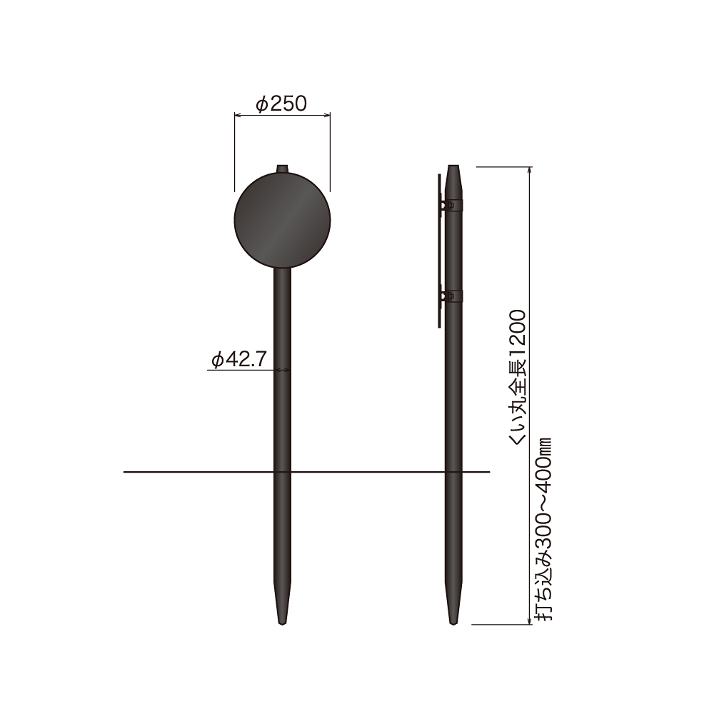 コンクリ基礎不要 打込杭ブラックサイン リーフ Φ250 (LCO-250)