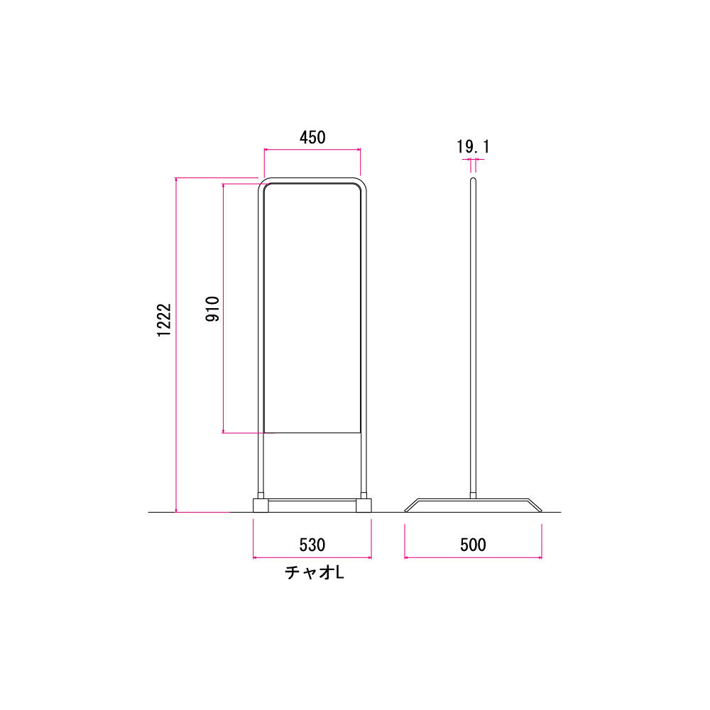 汎用性抜群のシンプルなデザイン。ローコスト屋外用スタンド看板のベストセラー「チャオ」