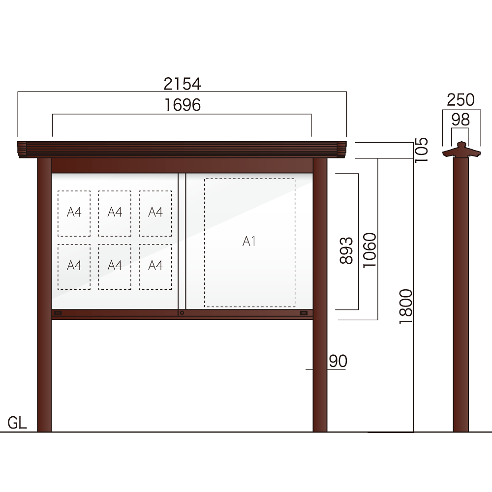 - 和風の雰囲気を醸し出す和風モダンな掲示板。落ち着いたダークブロンズカラーにひさしの付いたデザイン。
