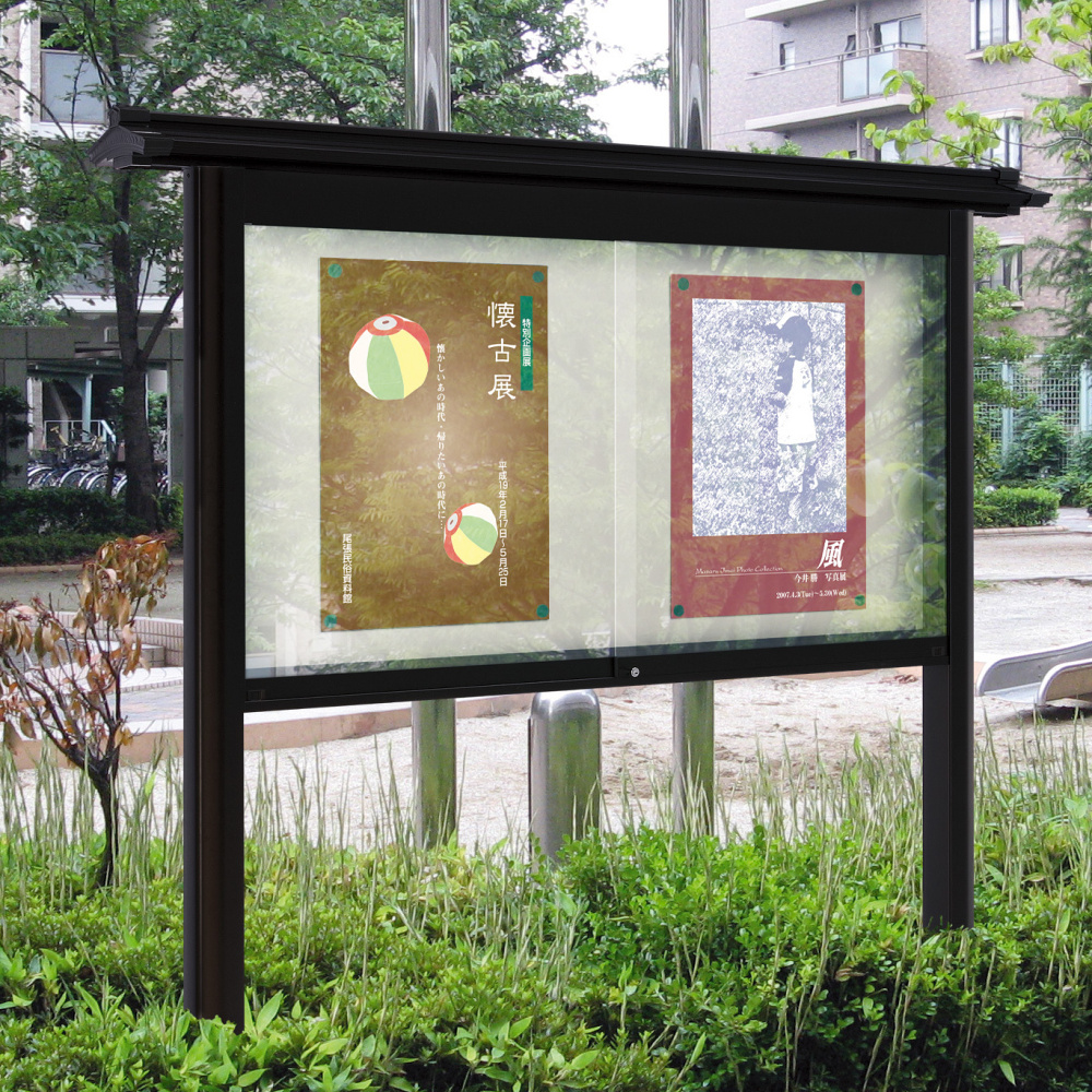 和風ひさしを装備した趣のあるアルミ掲示板。落ち着いた雰囲気にマッチします。
