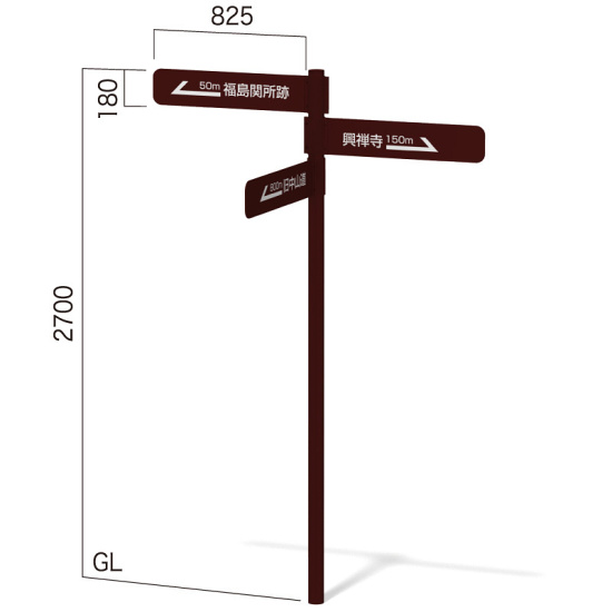 1本脚方向サイン インフォメックス GY-3 (3面パネル) ブラウン