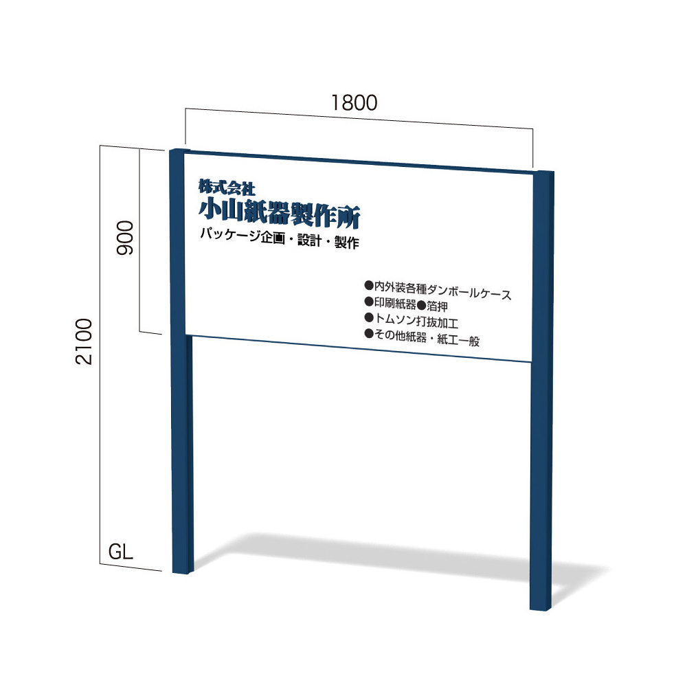 - 表示面にアルミ複合板ホワイトカラーを使用したコストパフォーマンスに優れたスタンダードサイン。