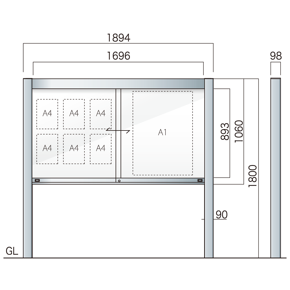 - 公園や公民館、町内会などの公共施設の掲示板として、企業や工場などの広報用途にもご利用いただける定番の掲示板です。