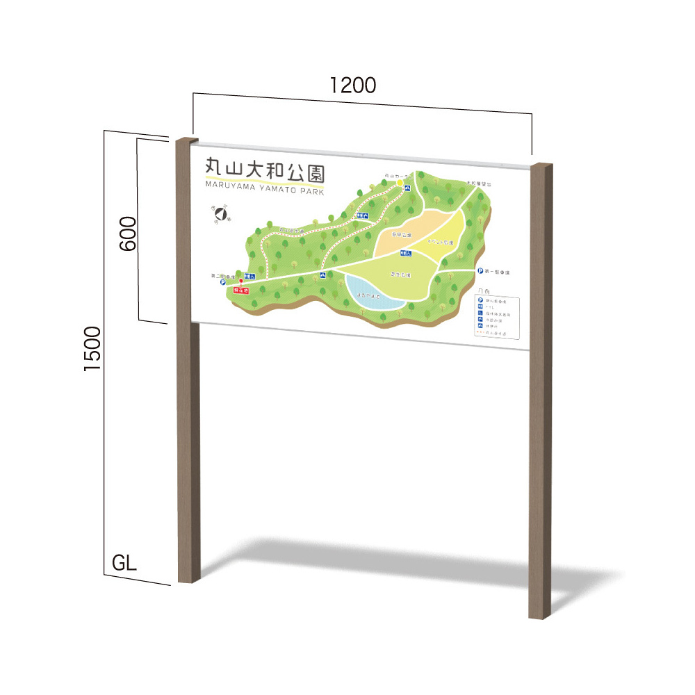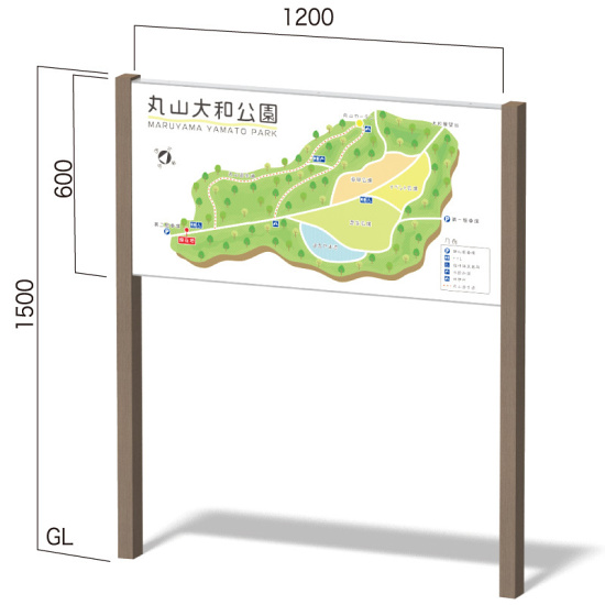 再生木材を使用したカジュアルサイン。自然と調和して、公園や施設をウキウキさせます。