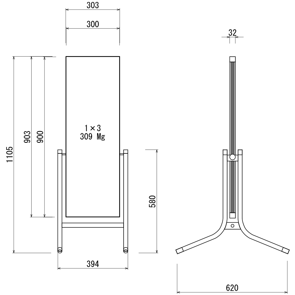 - W394×H1105×D620mm