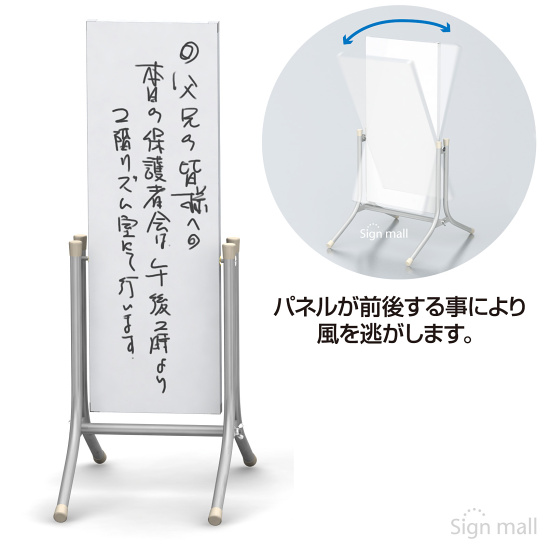 コロバンのマーカーボードタイプ。マグネットもOK。風に強く、「倒れない・転ばない」独自構造看板。