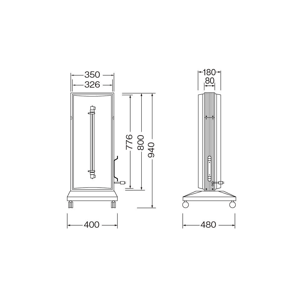 - W350×H800×D80×全高940mm