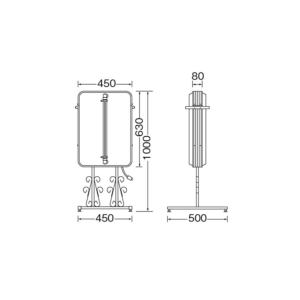 - W450×H630×D80×R50×全高1000mm