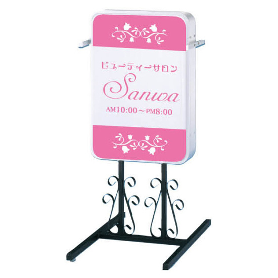 - 脚部分の唐草(からくさ)模様をあしらったデザインがワンポイントのオシャレなスタンド看板。