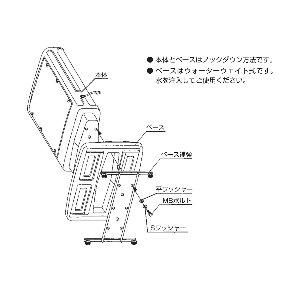 - ■ ベースはウォーターウェイト式です。水を注入してご使用ください。