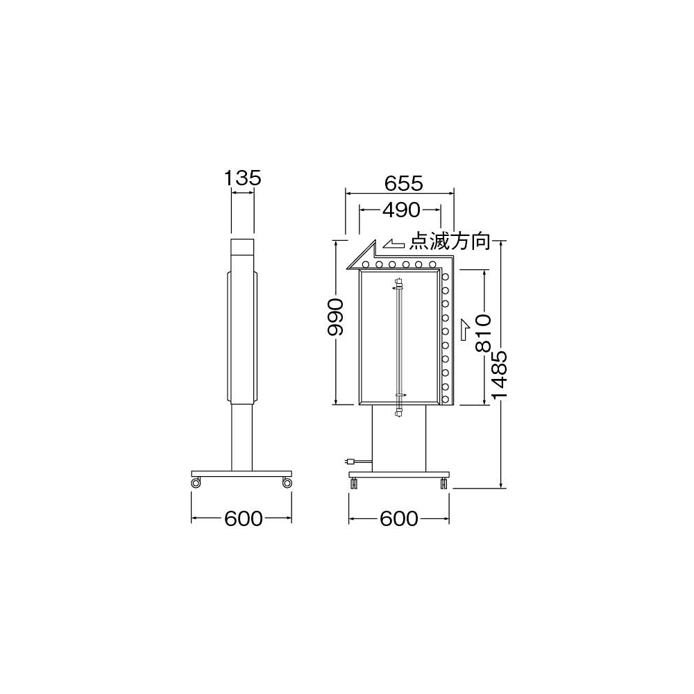 - 矢印型の点滅球が遠くからでもよく目立ちます。