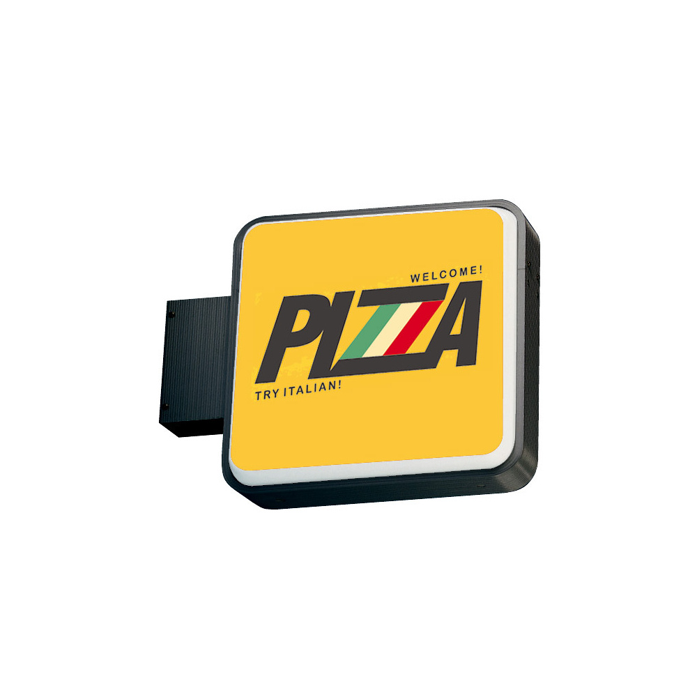 - 450mm角の正方形のスクエアなフォルムでロゴマーク等のデザインがしやすい突き出し看板です。