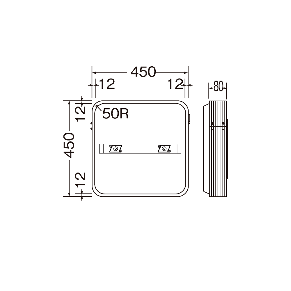 - W450×H450×D80×R50mm
