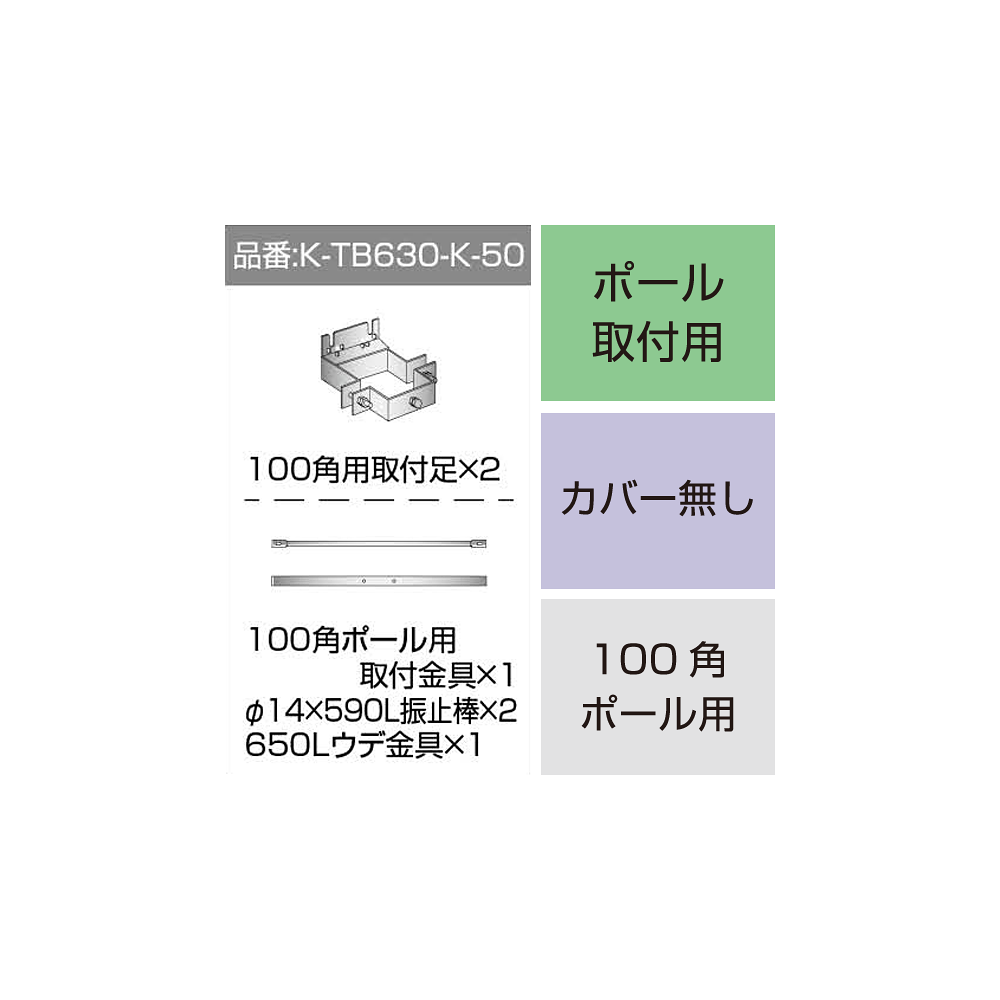 商品説明:三和サインワークス製突出・袖看板用取付金具【ポール用】100角ポール用 (K-TB630-K-50) ※本体同時購入用