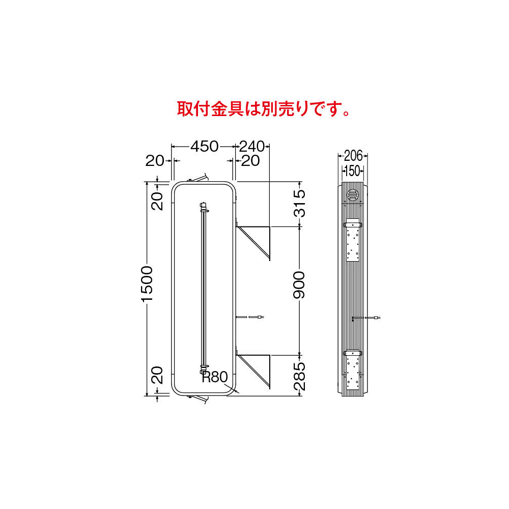 - W450×H1500×D150×R80mm