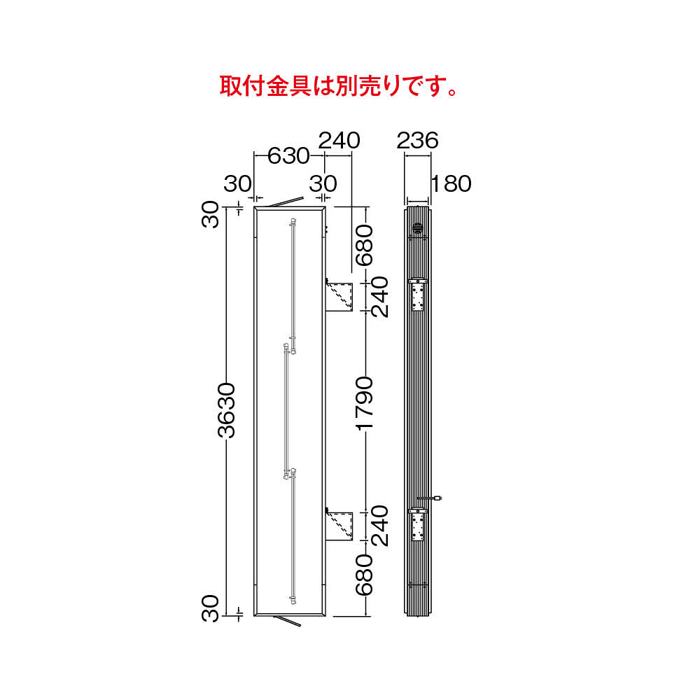 - ※取付金具は別売りです。本商品には取付用金具は付属されておりません。別途、オプションの取付金具をご一緒にご注文ください。