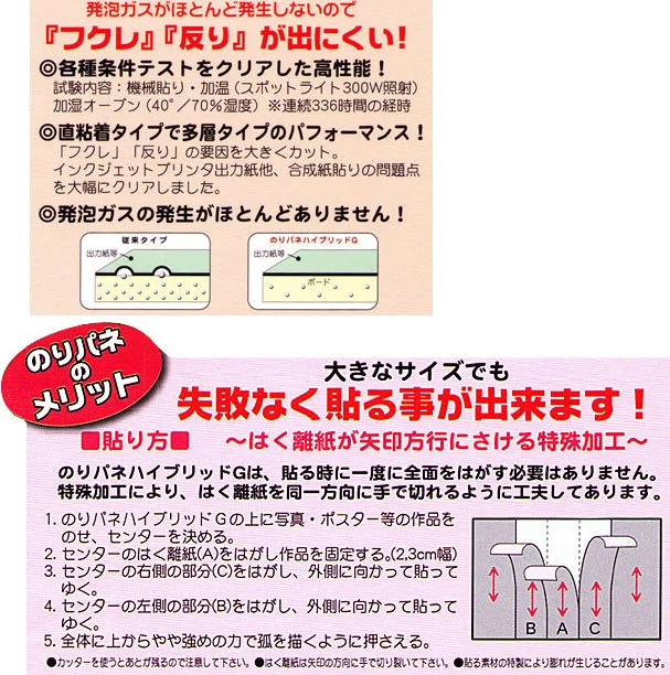 - のりパネ ハイブリッドGは発泡ガスがほとんど発生しないので、『フクレ』、『反り』が出にくい!