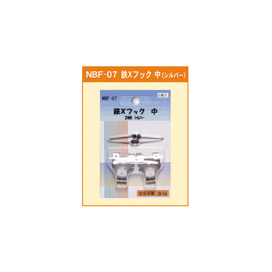 商品説明:鉄Xフック 中 2本針 シルバー (NBF-07)