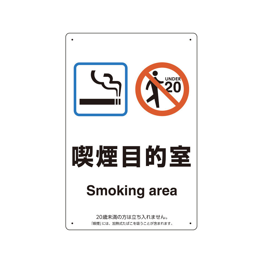 商品説明:改正健康増進法対応 喫煙専用室 標識 喫煙目的室(Smoking area) ボード(W200×H300) (803-301)