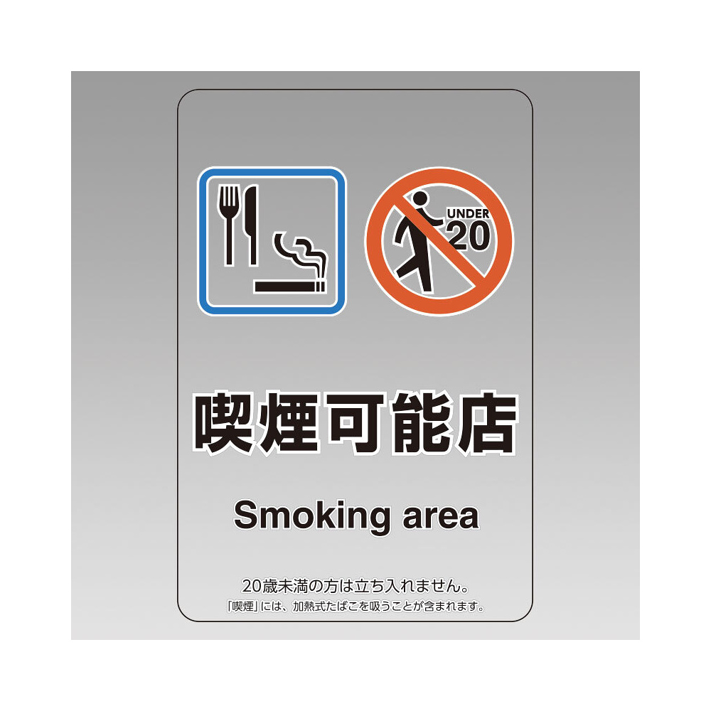 商品説明:改正健康増進法対応 喫煙専用室 標識 喫煙可能店 透明ステッカー(W100×H150) ※5枚1組 (807-93)