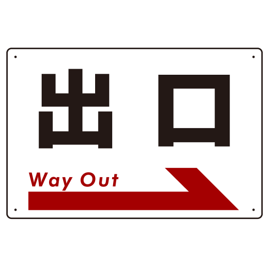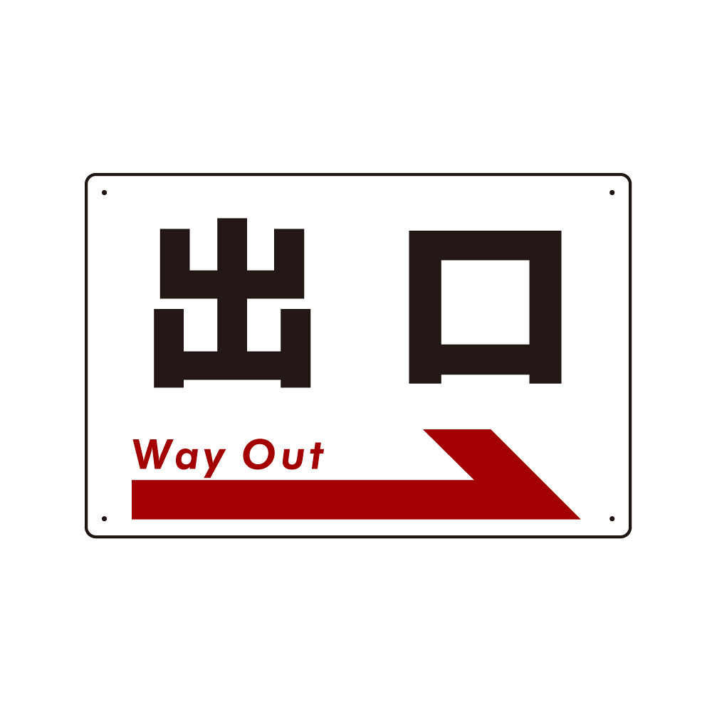 - 大きな「出口」の表示に矢印を組み合わせたデザイン。スムーズな誘導に一役買います。