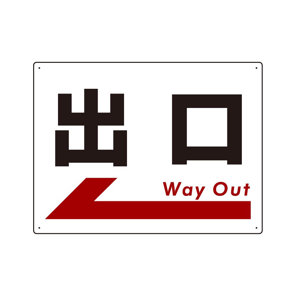 - 大きな「出口」の表示に矢印を組み合わせたデザイン。スムーズな誘導に一役買います。