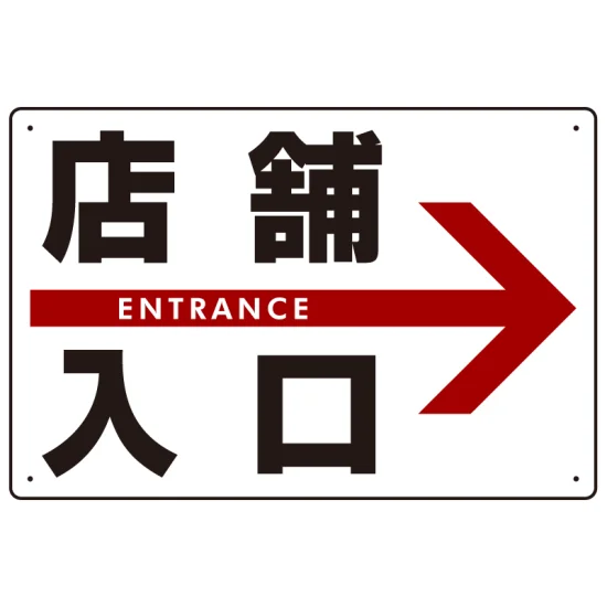 - 店舗の入口へ誘導する表示プレート。目立つ場所に表示すれば「あれ?入口どっちだっけ?」などとお客様が戸惑うこともありません。