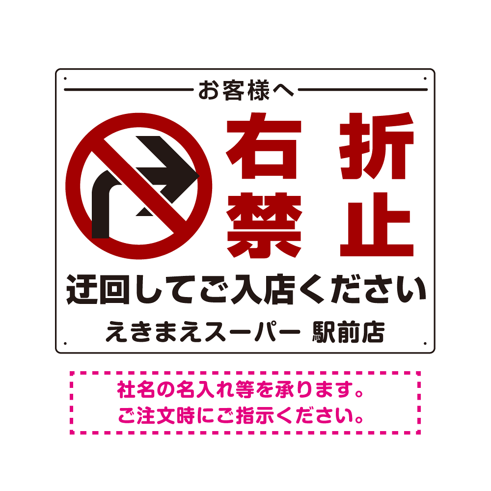 商品説明:入店・出庫用 右折禁止 プレート看板 入店案内 W600×H450 アルミ複合板 (SP-SMD316-60x45A)