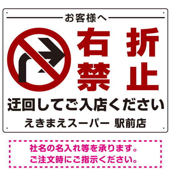 入店・出庫用 右折禁止 プレート看板 入店案内 W600×H450 アルミ複合板 (SP-SMD316-60x45A)