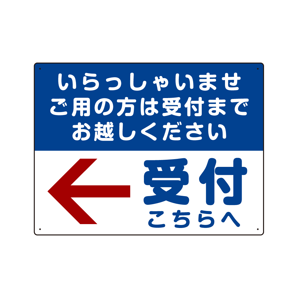 いらっしゃいませ・受付こちらへ プレート看板 左矢印 W600×H450 エコユニボード (SP-SMD320-60x45U)