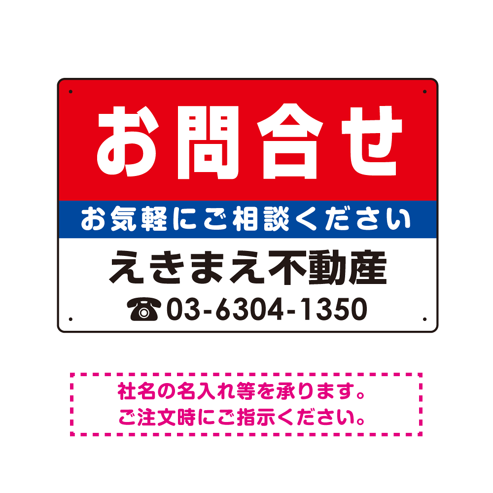 商品説明:お問合せ オリジナル プレート看板 赤背景 W450×H300 エコユニボード (SP-SMD148-45x30U)