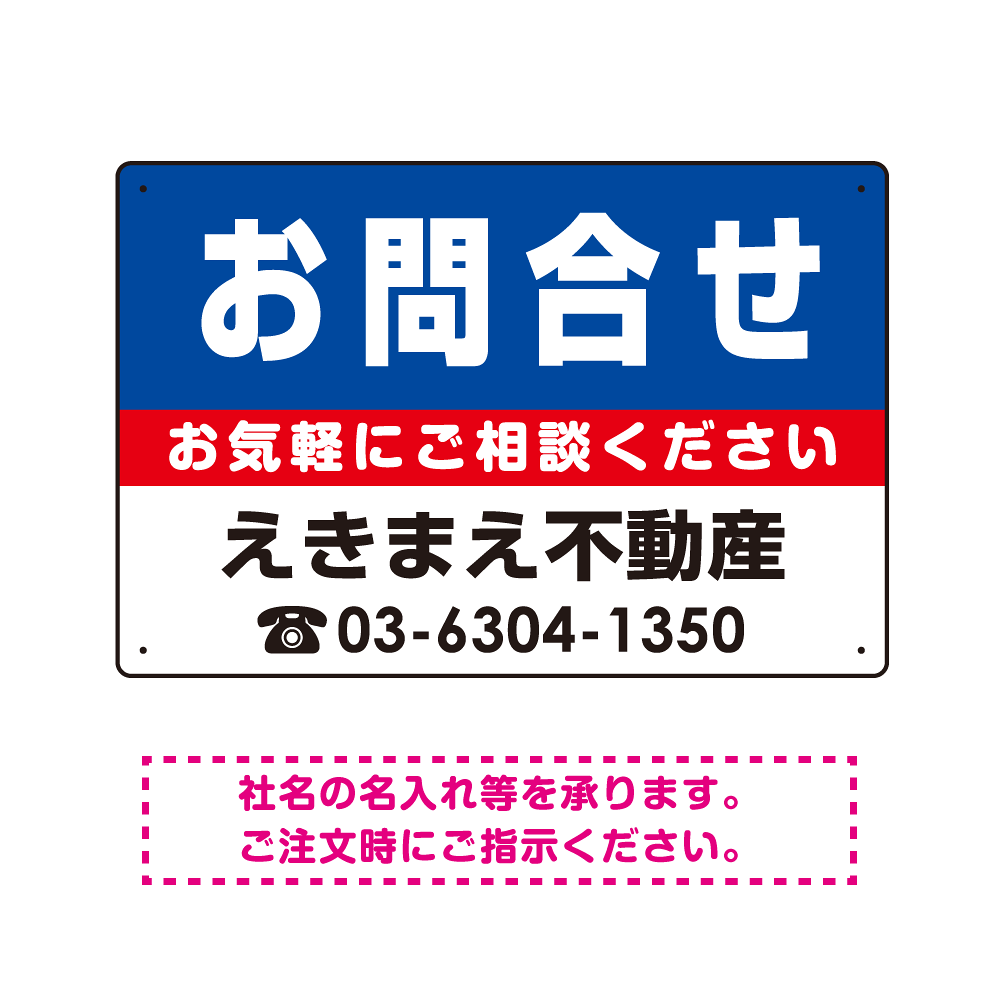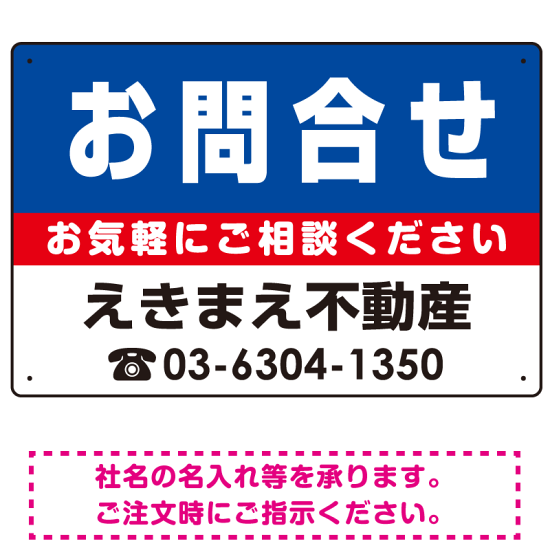 お問合せ オリジナル プレート看板 青背景 W450×H300 アルミ複合板 (SP-SMD190-45x30A)