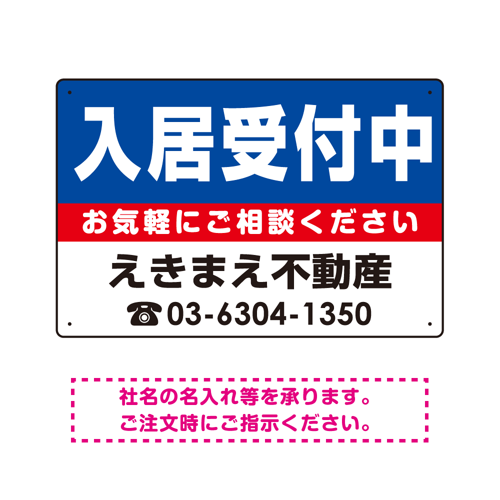 入居受付中 オリジナル プレート看板 青背景 W450×H300 エコユニボード (SP-SMD191-45x30U)
