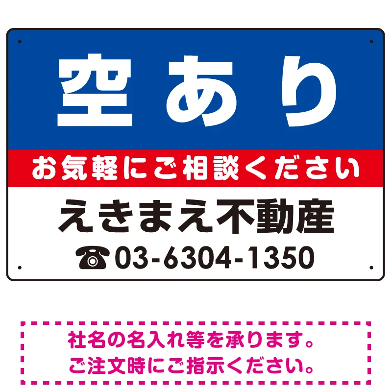 よくある質問:空あり オリジナル プレート看板 青背景 W450×H300 エコユニボード (SP-SMD192-45x30U)