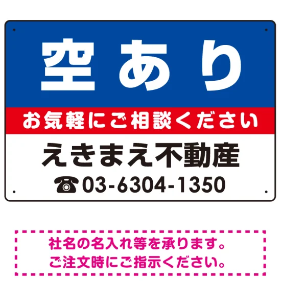 - 空あり オリジナル プレート看板 青背景 W450×H300 エコユニボード (SP-SMD192-45x30U)