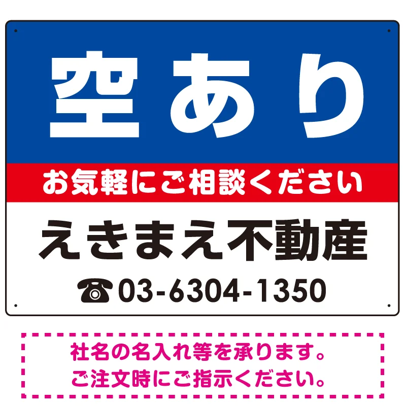 よくある質問:空あり オリジナル プレート看板 青背景 W600×H450 アルミ複合板 (SP-SMD192-60x45A)