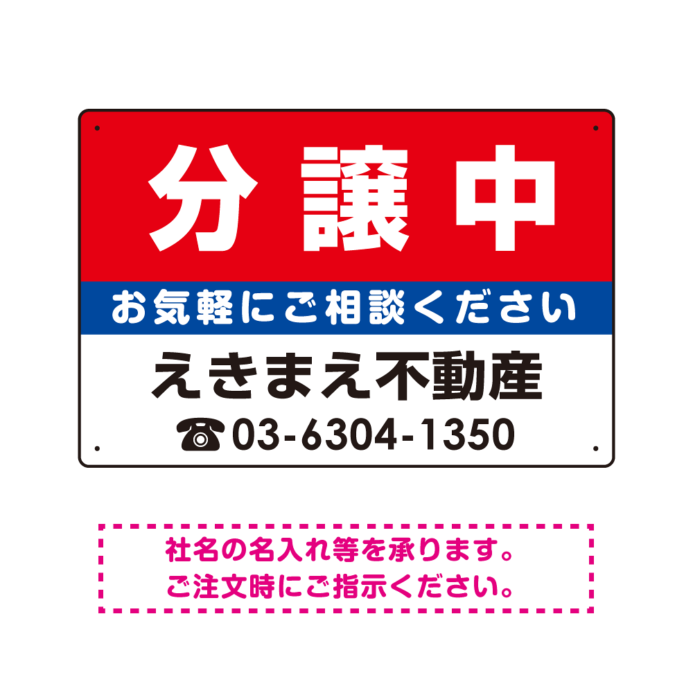 分譲中 オリジナル プレート看板 赤背景 W450×H300 エコユニボード (SP-SMD152-45x30U)