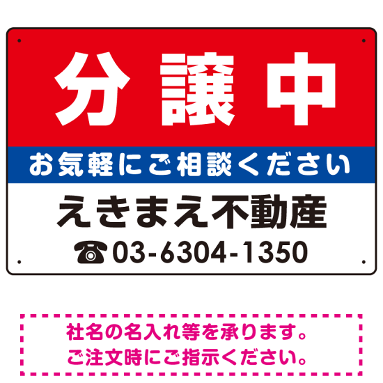 商品説明:分譲中 オリジナル プレート看板 赤背景 W450×H300 エコユニボード (SP-SMD152-45x30U)