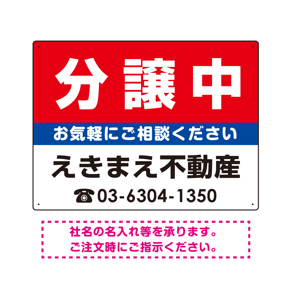 分譲中 オリジナル プレート看板 赤背景 W600×H450 エコユニボード (SP-SMD152-60x45U)
